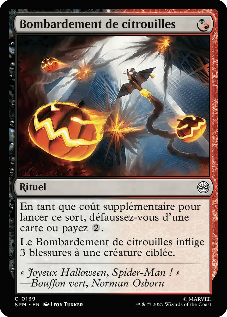 Pumpkin Bombardment inflige 3 blessures à une créature ciblée.