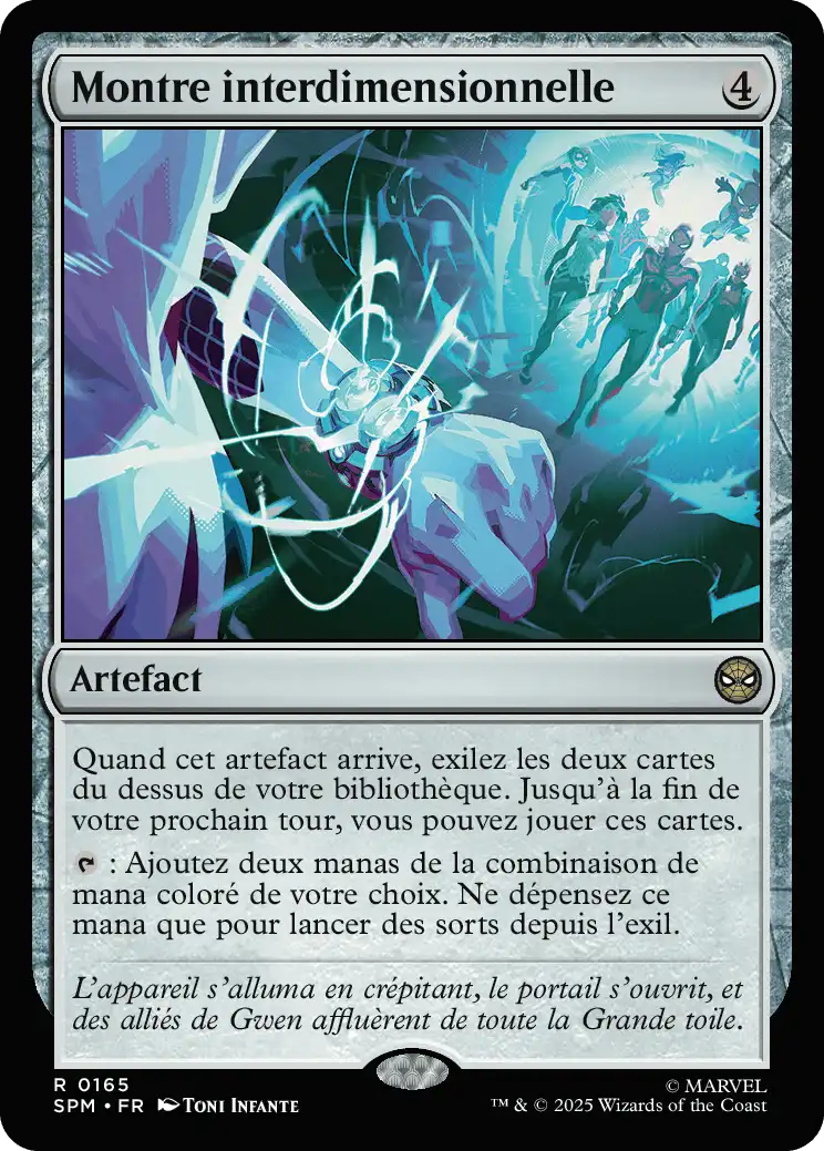 Quand cet artefact arrive, exilez les deux cartes du dessus de votre bibliothèque. Jusqu'à la fin de votre prochain tour, vous pouvez jouer ces cartes.
