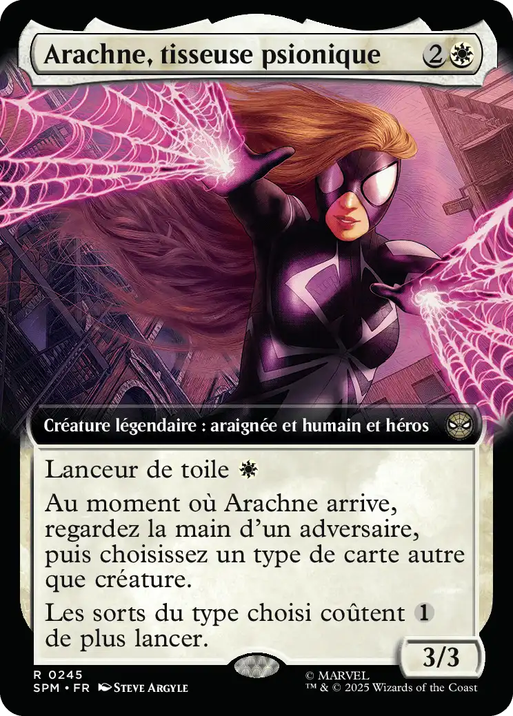 Au moment où Arachne arrive, regardez la main d'un adversaire, puis choisissez un type de carte autre que créature.