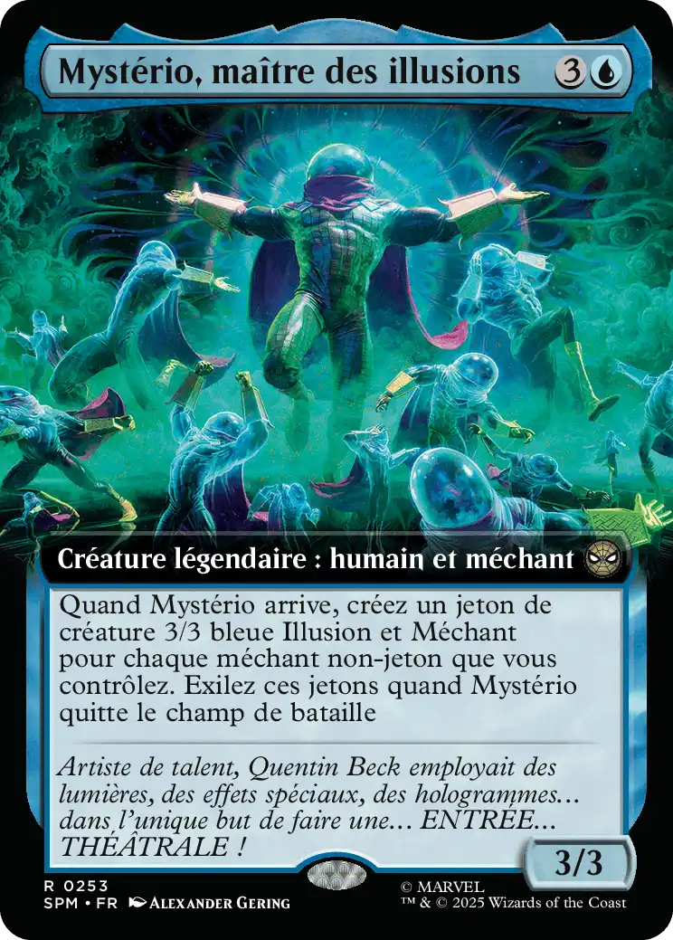 Quand Mystério arrive, créez un jeton de créature 3/3 bleue Illusion et Méchant pour chaque méchant non-jeton que vous contrôlez. Exilez ces jetons quand Mystério quitte le champ de bataille.