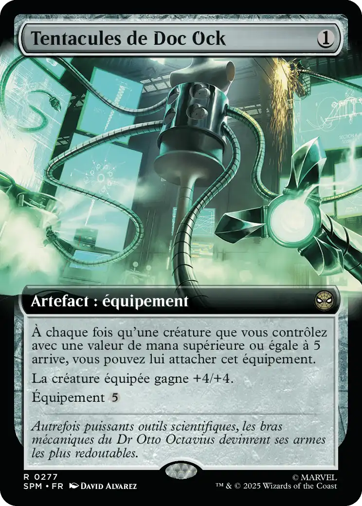 À chaque fois qu'une créature que vous contrôlez avec une valeur de mana supérieure ou égale à 5 arrive, vous pouvez lui attacher cet équipement.