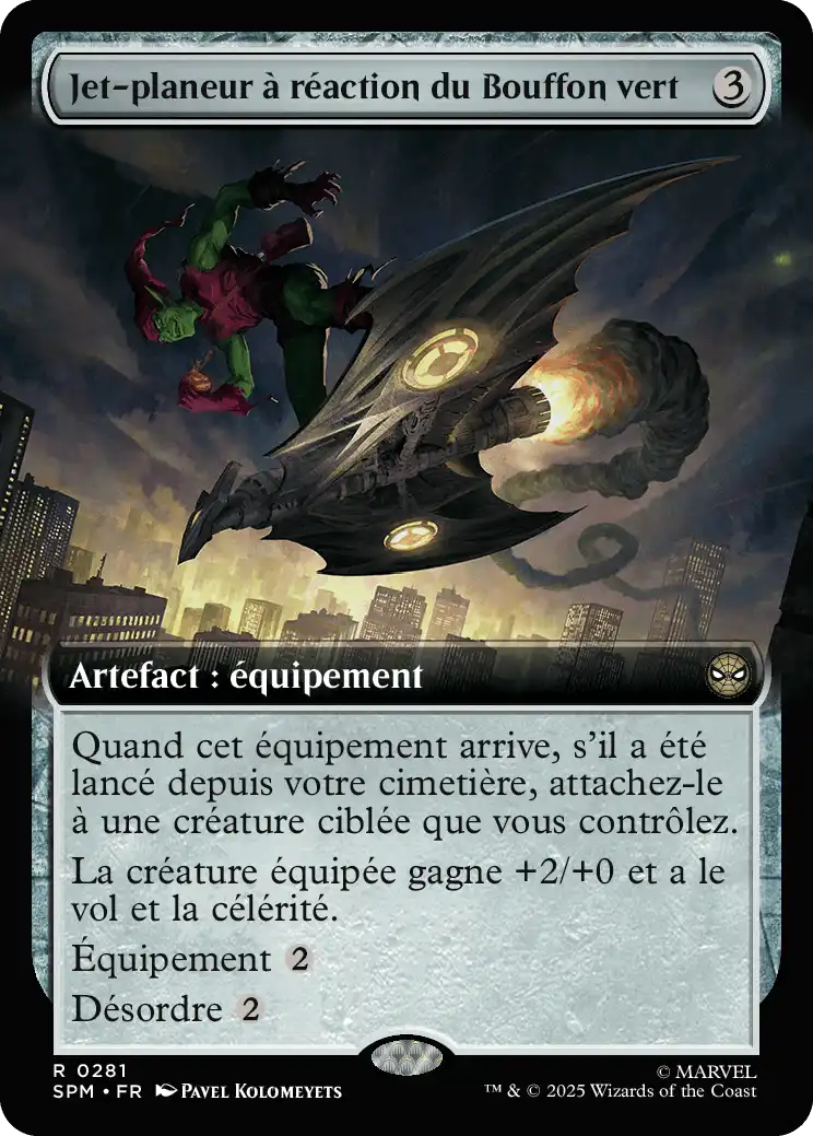 La créature équipée gagne +2/+0 et a le vol et la célérité.
