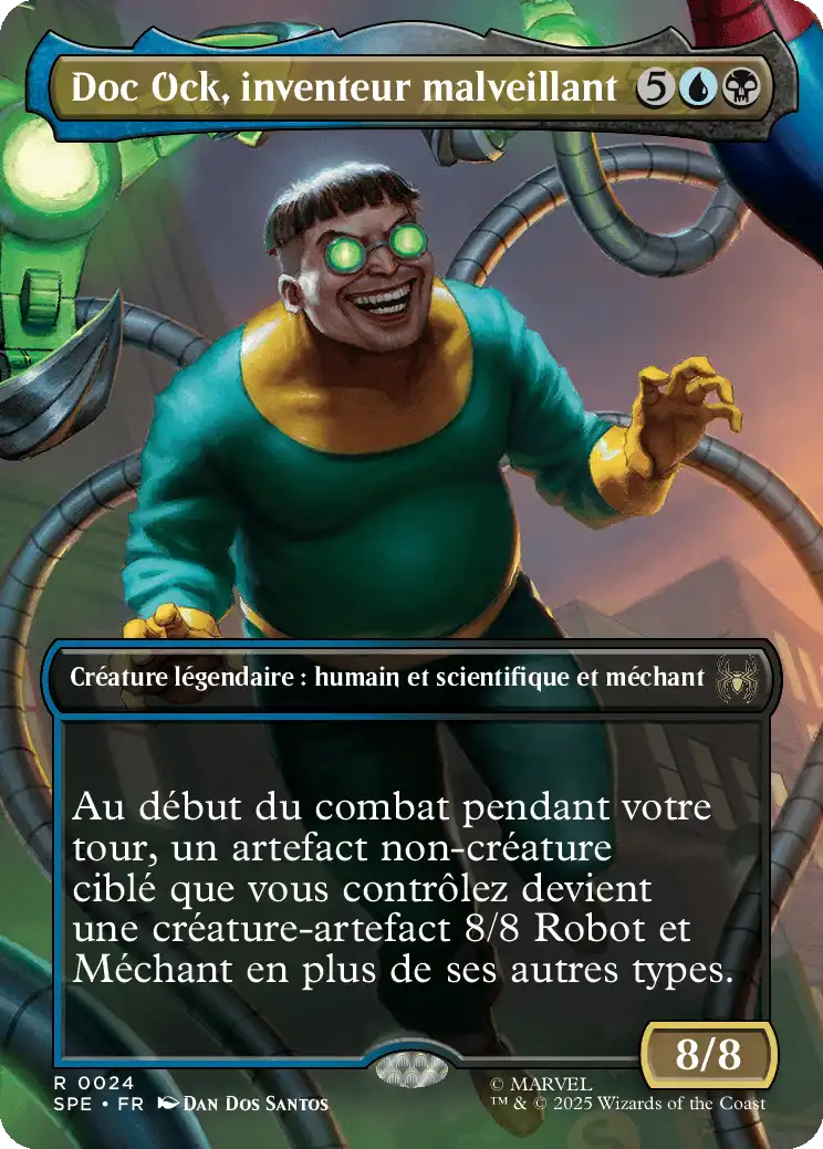 Au début du combat pendant votre tour, un artefact non-créature ciblé que vous contrôlez devient une créature-artefact 8/8 Robot et Méchant en plus de ses autres types.
