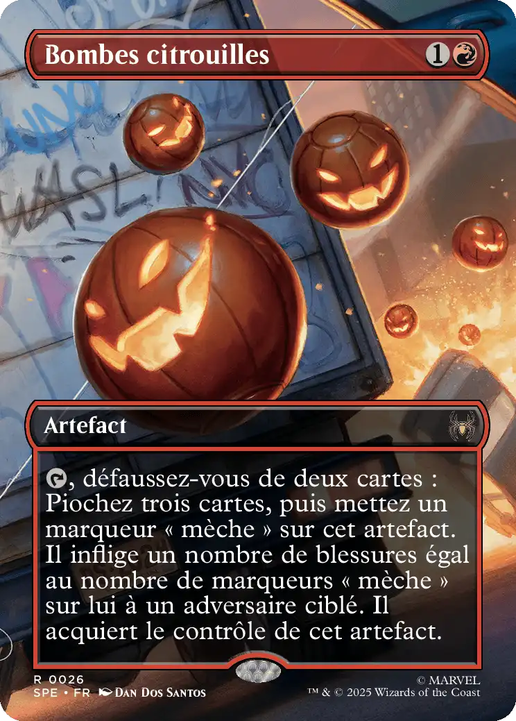 , défaussez-vous de deux cartes : Piochez trois cartes, puis mettez un marqueur "mèche" sur cet artefact. Il inflige un nombre de blessures égal au nombre de marqueurs "mèche" sur lui à un adversaire ciblé. Il acquiert le contrôle de cet artefact.