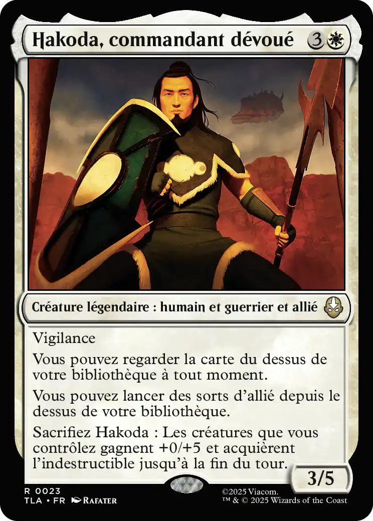 Sacrifiez Hakoda : Les créatures que vous contrôlez gagnent +0/+5 et acquièrent l'indestructible jusqu'à la fin du tour.