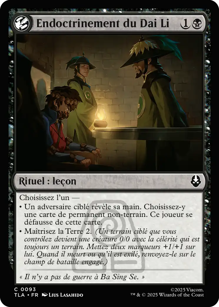 • Un adversaire ciblé révèle sa main. Choisissez-y une carte de permanent non-terrain. Ce joueur se défausse de cette carte.