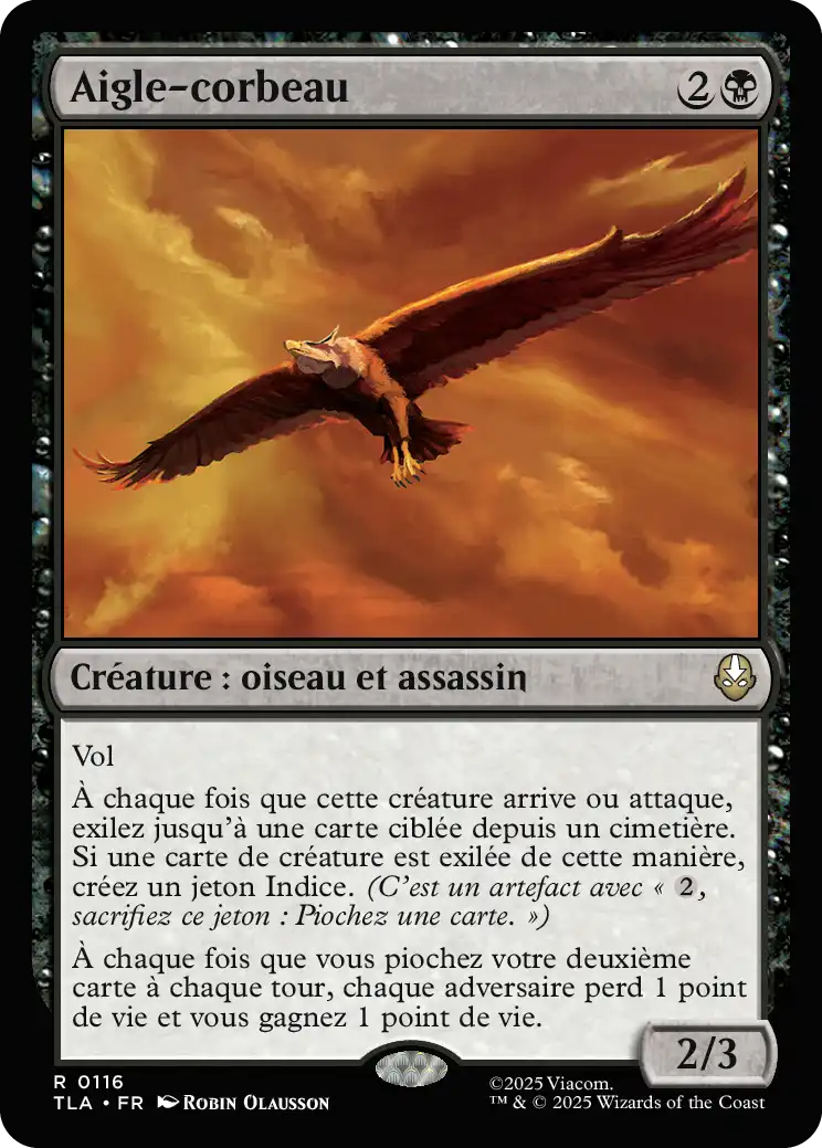 À chaque fois que cette créature arrive ou attaque, exilez jusqu'à une carte ciblée depuis un cimetière. Si une carte de créature est exilée de cette manière, créez un jeton Indice.