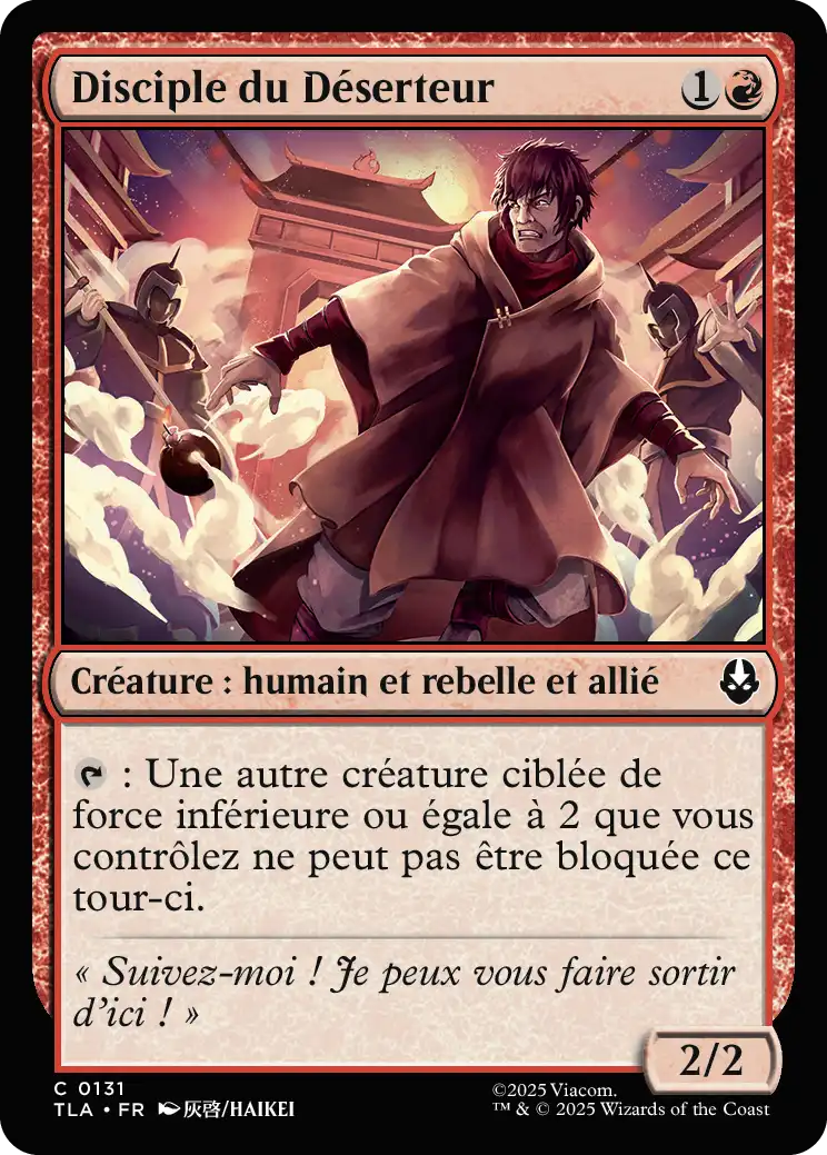 : Une autre créature ciblée de force inférieure ou égale à 2 que vous contrôlez ne peut pas être bloquée ce tour-ci.Vous n'êtes pas connecté ! connectez-vous ou inscrivez-vous pour poster un commentaire