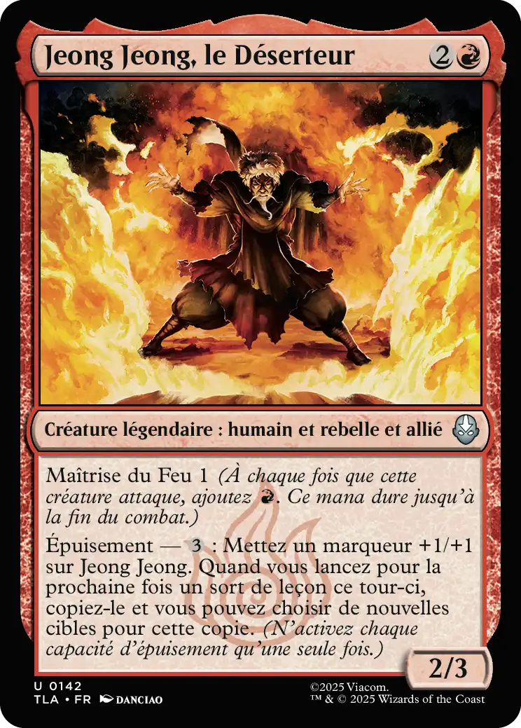 : Mettez un marqueur +1/+1 sur Jeong Jeong. Quand vous lancez pour la prochaine fois un sort de leçon ce tour-ci, copiez-le et vous pouvez choisir de nouvelles cibles pour cette copie. (N'activez chaque capacité d'épuisement qu'une seule fois.).Vous n'êtes pas connecté ! connectez-vous ou inscrivez-vous pour poster un commentaire