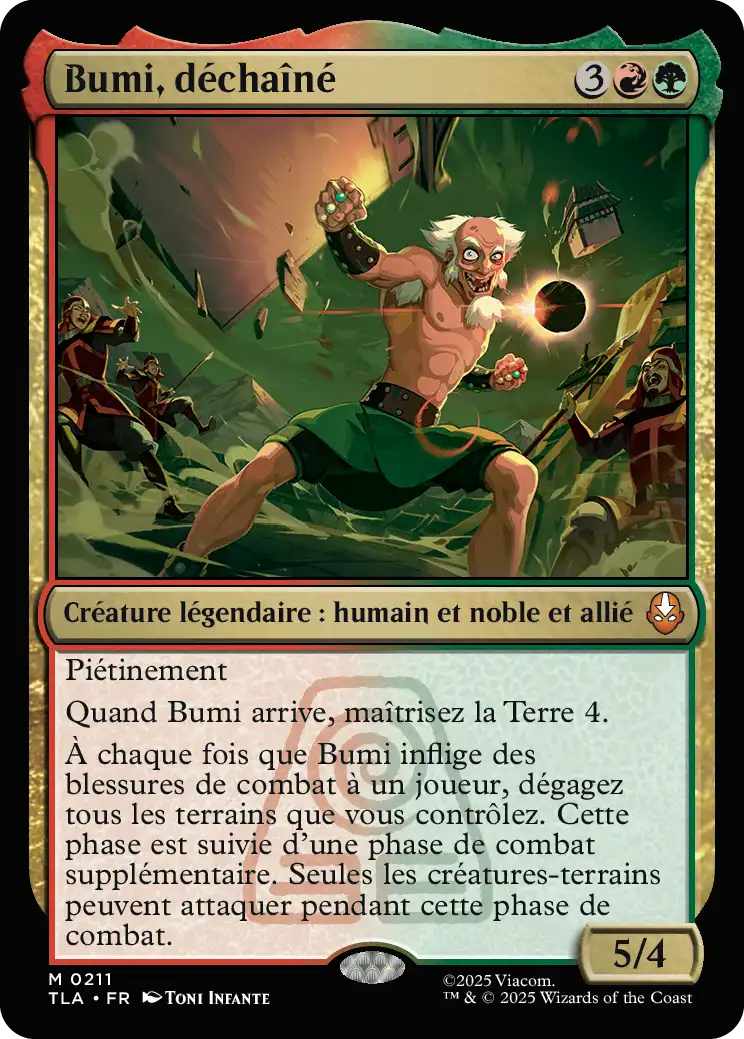 Whenever Bumi deals combat damage to a player, untap all lands you control. After this phase, there is an additional combat phase. Only land creatures can attack during that combat phase.