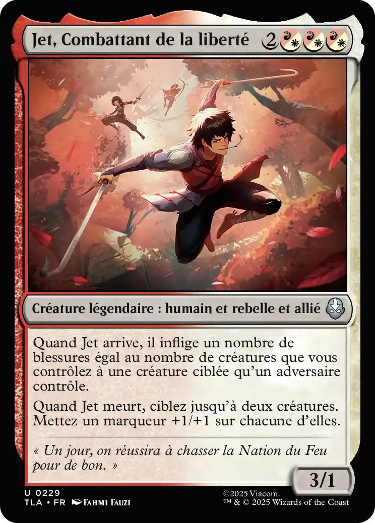 Quand Jet meurt, mettez un marqueur +1/+1 sur chacune de jusqu'à deux créatures ciblées.