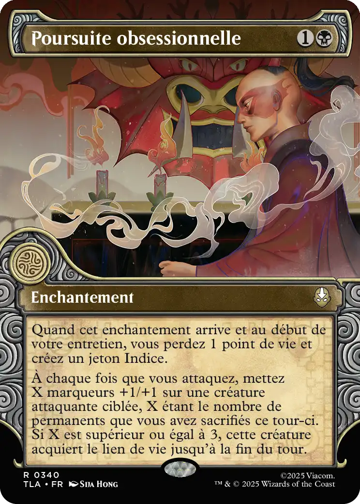 À chaque fois que vous attaquez, mettez X marqueurs +1/+1 sur une créature attaquante ciblée, X étant le nombre de permanents que vous avez sacrifiés ce tour-ci. Si X est supérieur ou egal a
