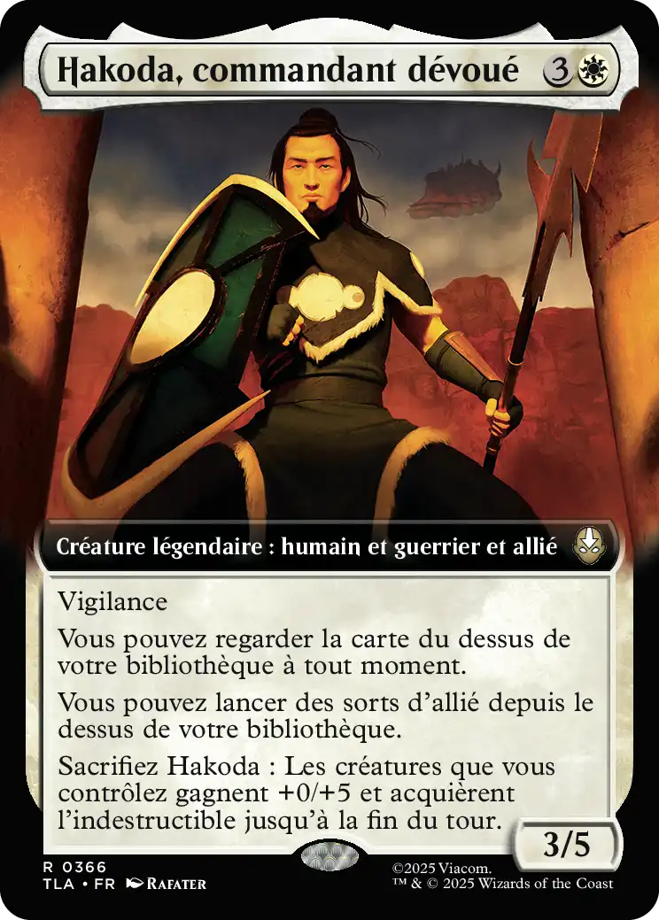 Sacrifiez Hakoda : Les créatures que vous contrôlez gagnent +0/+5 et acquièrent l'indestructible jusqu'à la fin du tour.