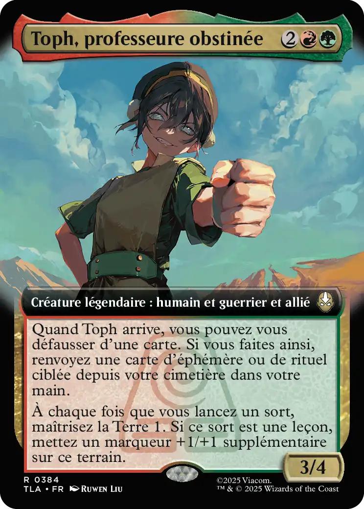 Quand Toph arrive, vous pouvez vous défausser d'une carte. Si vous faites ainsi, renvoyez une carte d'éphémère ou de rituel ciblée depuis votre cimetière dans votre main.