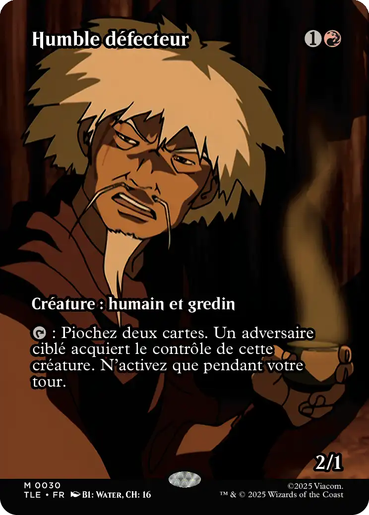 : Piochez deux cartes. Un adversaire ciblé acquiert le contrôle de cette créature. N'activez que pendant votre tour.Vous n'êtes pas connecté ! connectez-vous ou inscrivez-vous pour poster un commentaire