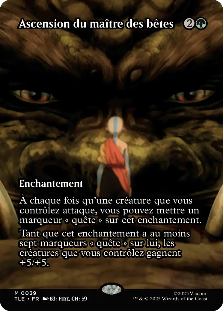 À chaque fois qu'une créature que vous contrôlez attaque, vous pouvez mettre un marqueur "quête" sur l'Ascension du maître des bêtes.