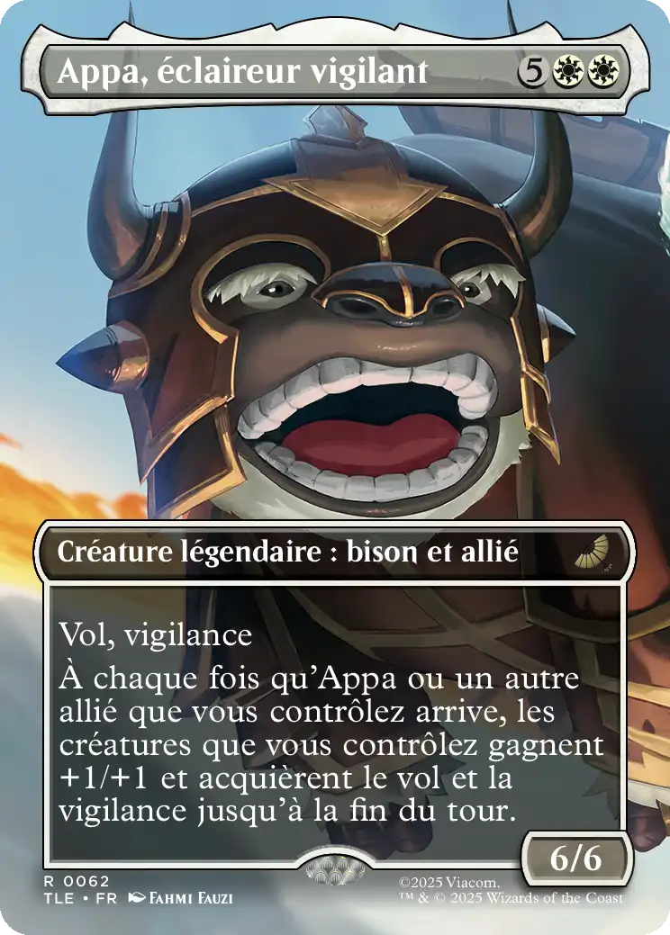 À chaque fois qu'Appa ou un autre allié que vous contrôlez arrive, les créatures que vous contrôlez gagnent +1/+1 et acquièrent le vol et la vigilance jusqu'à la fin du tour.