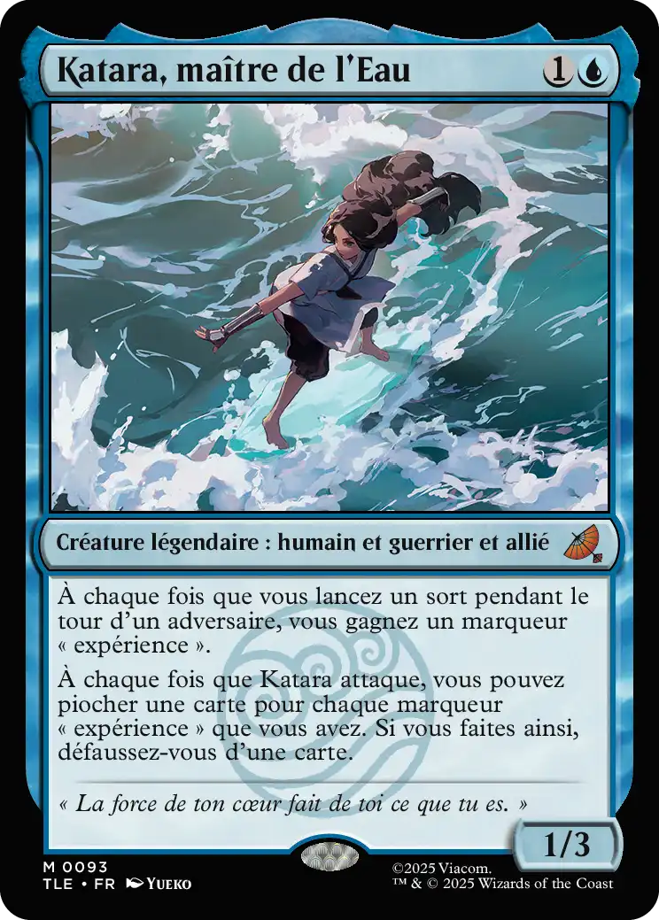 À chaque fois que Katara attaque, vous pouvez piocher une carte pour chaque marqueur "expérience" que vous avez. Si vous faites ainsi, défaussez-vous d'une carte.