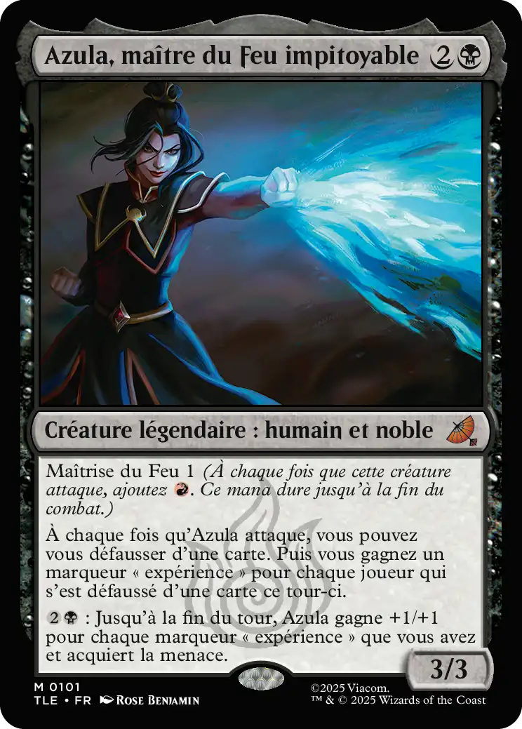 : Jusqu'à la fin du tour, Azula gagne +1/+1 pour chaque marqueur "expérience" que vous avez et acquiert la menace.Vous n'êtes pas connecté ! connectez-vous ou inscrivez-vous pour poster un commentaire