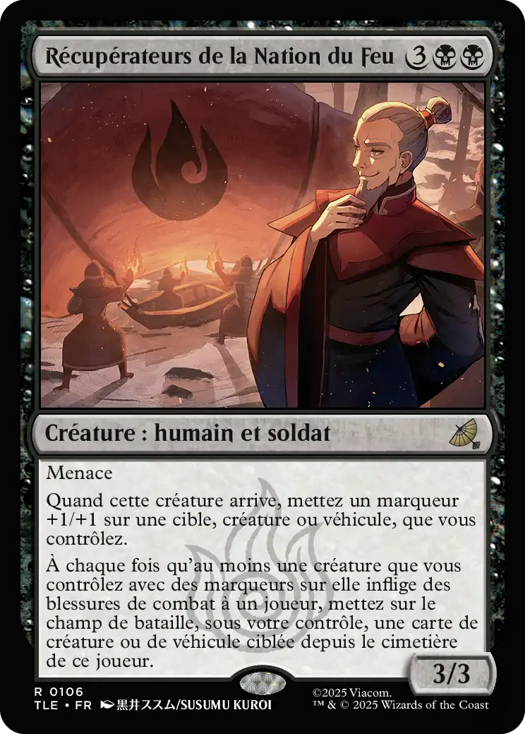 À chaque fois qu'au moins une créature que vous contrôlez avec des marqueurs sur elle inflige des blessures de combat à un joueur, mettez sur le champ de bataille, sous votre contrôle, une carte de créature ou de véhicule ciblée depuis le cimetière de ce joueur.