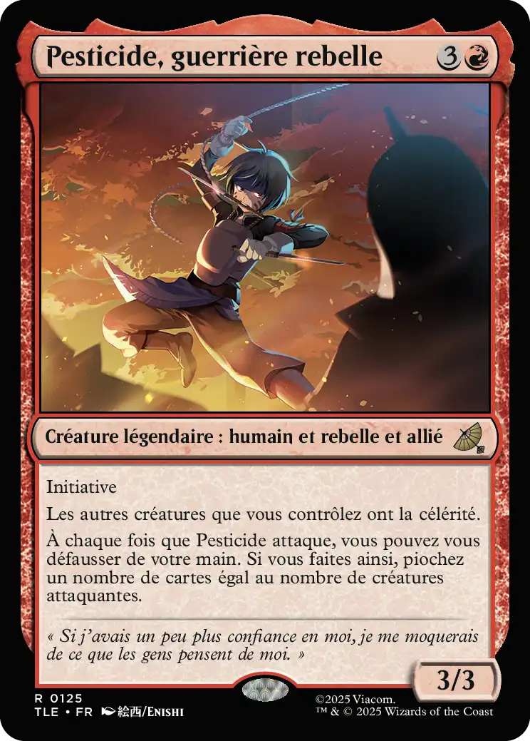 À chaque fois que Pesticide attaque, vous pouvez vous défausser de votre main. Si vous faites ainsi, piochez un nombre de cartes égal au nombre de créatures attaquantes.