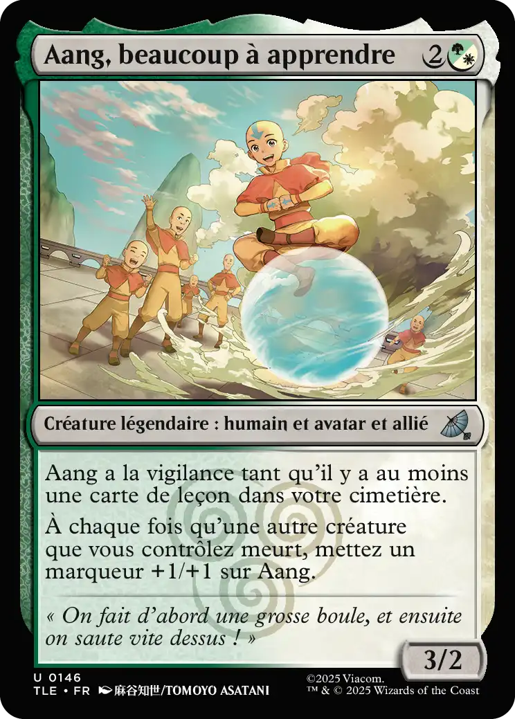 À chaque fois qu'une autre créature que vous contrôlez meurt, mettez un marqueur +1/+1 sur Aang.