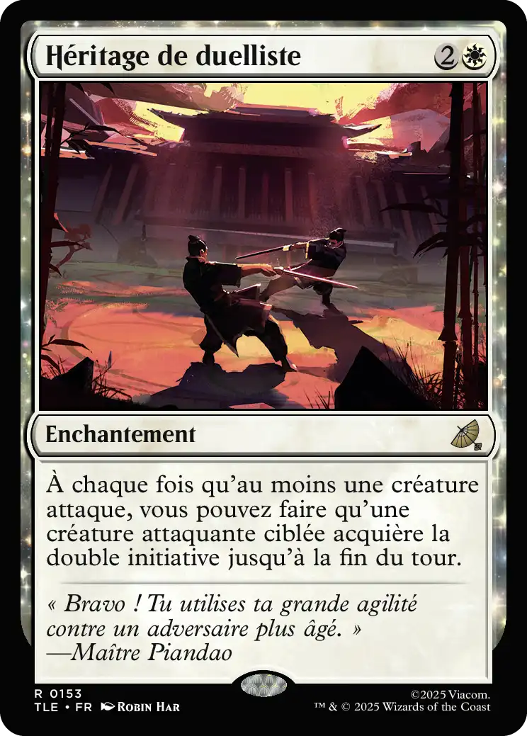 À chaque fois qu'au moins une créature attaque, vous pouvez faire qu'une créature attaquante ciblée acquière la double initiative jusqu'à la fin du tour.