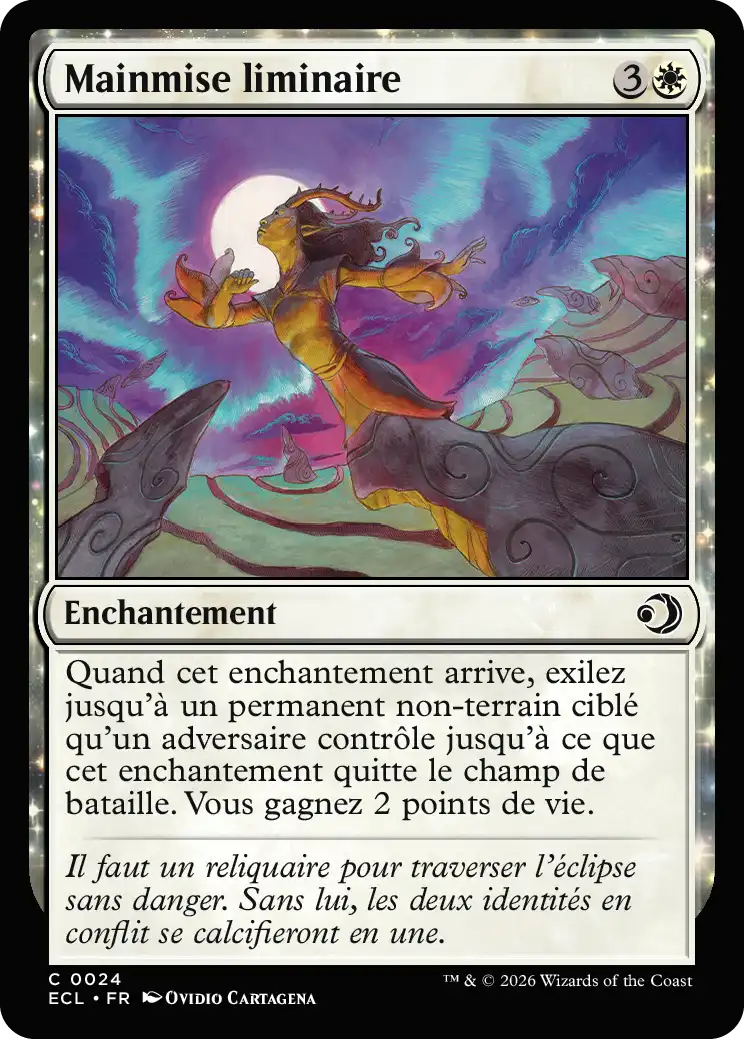 Quand cet enchantement arrive, exilez jusqu'à un permanent non-terrain ciblé qu'un adversaire contrôle jusqu'à ce que cet enchantement quitte le champ de bataille. Vous gagnez 2 points de vie.
