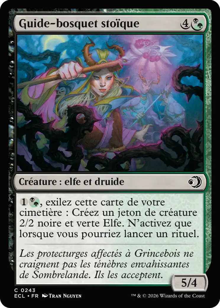 , exilez cette carte de votre cimetière : Créez un jeton de créature 2/2 noire et verte Elfe. N'activez que lorsque vous pourriez lancer un rituel.Vous n'êtes pas connecté ! connectez-vous ou inscrivez-vous pour poster un commentaire
