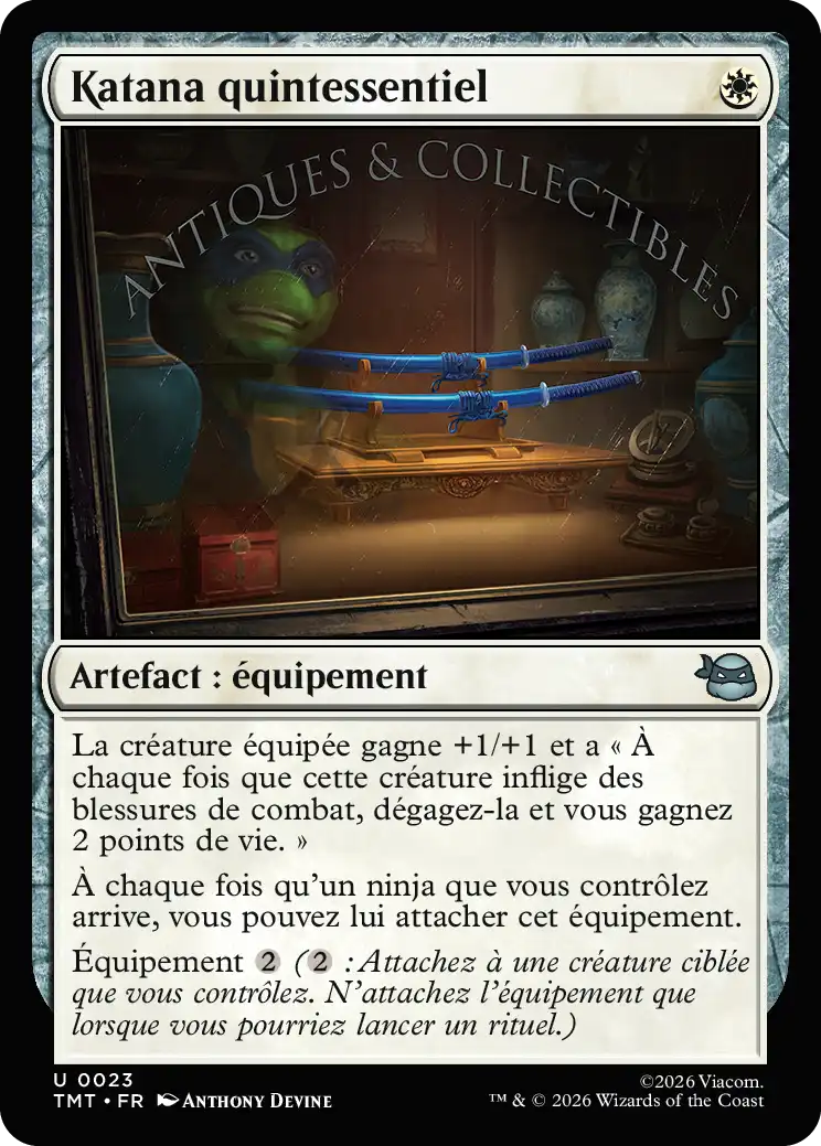À chaque fois qu'un ninja que vous contrôlez arrive, vous pouvez lui attacher cet équipement.