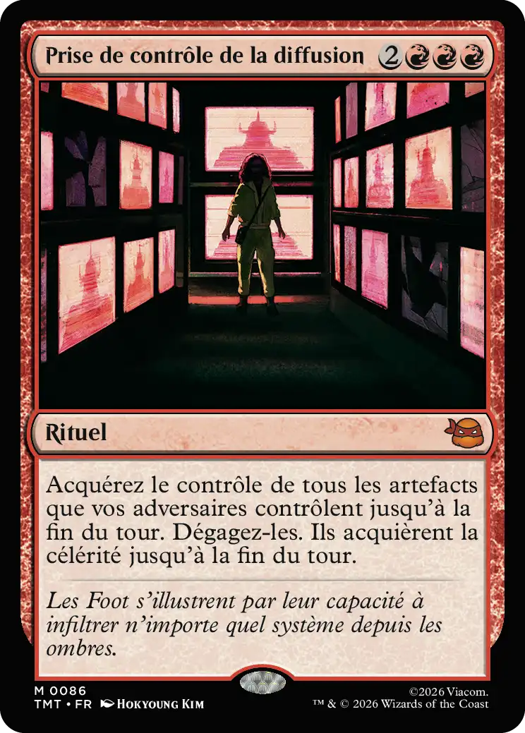 Acquérez le contrôle de tous les artefacts que vos adversaires contrôlent jusqu'à la fin du tour. Dégagez-les. Ils acquièrent la célérité jusqu'à la fin du tour.