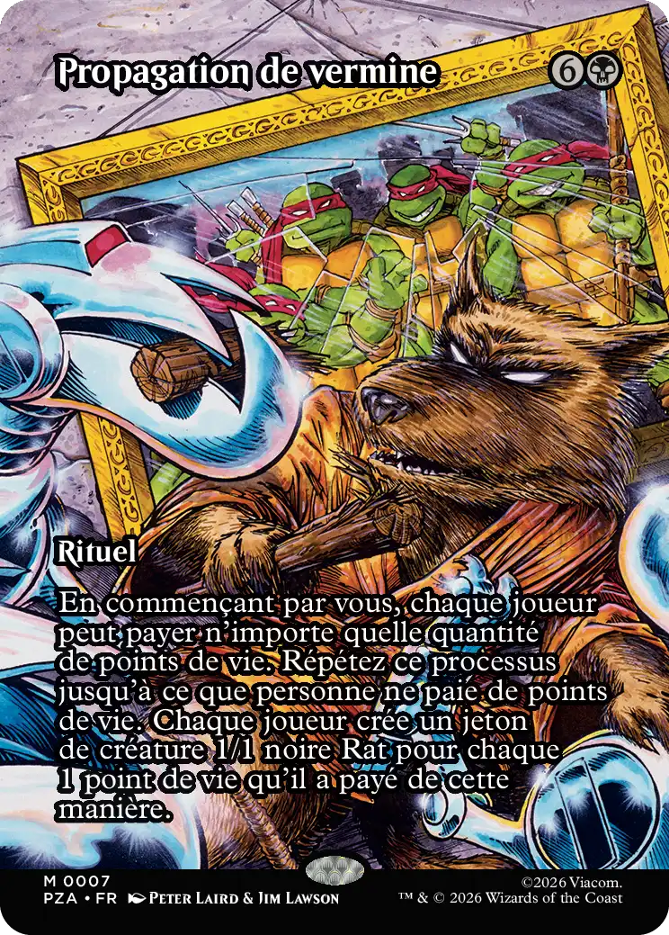 En commençant par vous, chaque joueur peut payer le nombre de points de vie de son choix. Répétez ce processus jusqu'à ce que personne ne paie de points de vie. Chaque joueur crée un jeton de créature 1/1 noire Rat pour chaque 1 point de vie payé de cette manière.