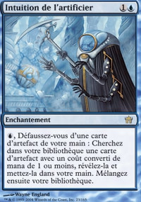 , défaussez-vous d'une carte d'artefact : Cherchez dans votre bibliothèque une carte d'artefact avec un coût converti de mana de 1 ou moins, révélez cette carte, et mettez-la dans votre main. Mélangez ensuite votre bibliothèque.Vous n'êtes pas connecté ! connectez-vous ou inscrivez-vous pour poster un commentaire