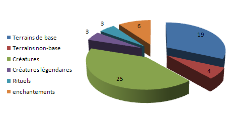 Ici on peut voir que les créatures prennent une place importante dans ce deck, la plupart nous servent à nous protéger (Rempart luxurian, Archers d'Ezuri, ...) ou à produire du mana (Elfes de Llanowar, Oratrice, ...) le temps d'avoir le Lige en jeux.