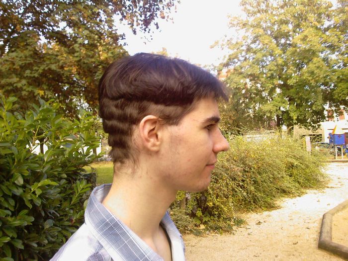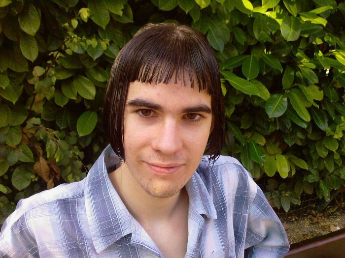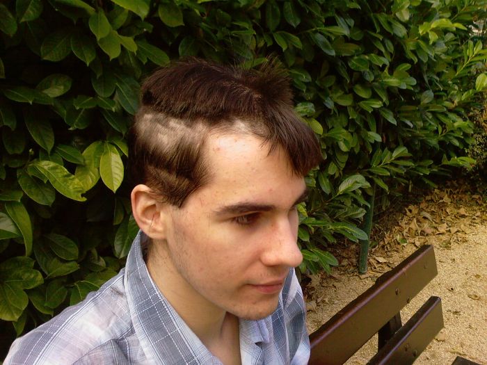 Petite explication concernant cette photo : je suis passé de cheveux long à court en une après midi, c'est une copine qui me les a coupé dans un square à Dijon, et bien sur elle s'est un peu amusé.