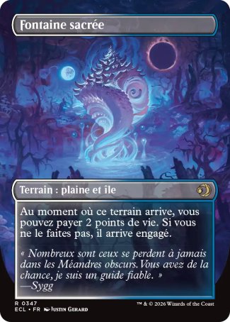 De plus, il y aura 5 ravlands (Jardin du Temple, Conduit de Vapeur, Tombeau luxuriant, Fontaine sacrée, Crypte de sang) qui existeront aussi en version borderless réversible, c'est-à-dire en recto-verso avec un côté Lorwyn et un côté Sombrelande.